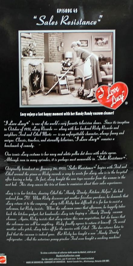 About This 2004 Celebrity Dolls Collection - I Love Lucy Episode 45 "Sales Resistance!" Eighth in the Barbie Series Depicting... Read more