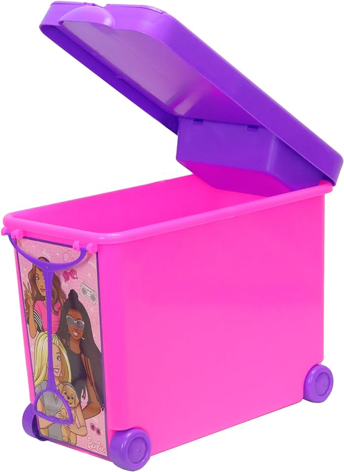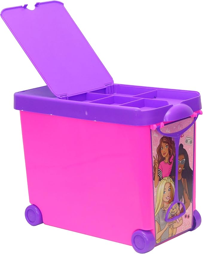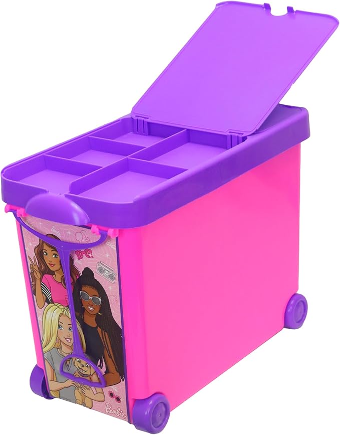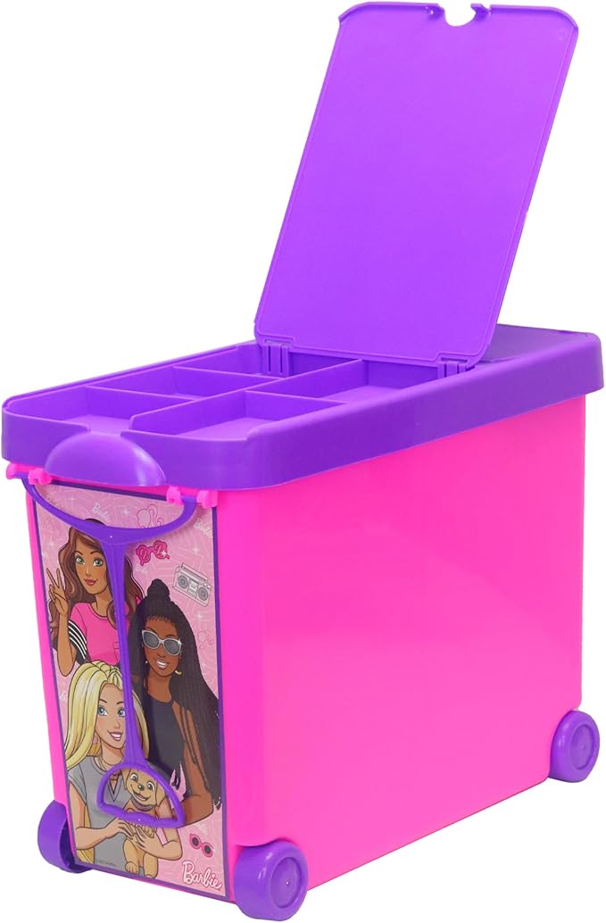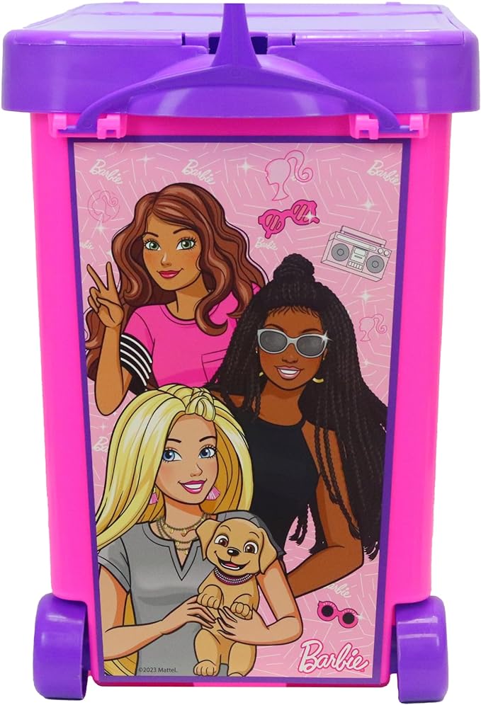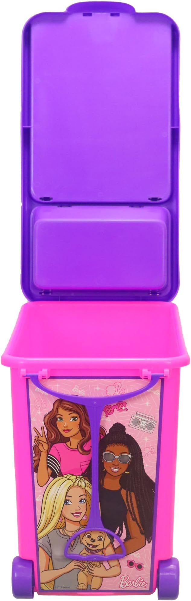 Barbie Store It All! Rolling Storage Bin – Extra-Large Organizer Case with Wheels & Handle for Barbie Dolls, Clothes, Accessories & Playsets – Pink Portable Travel Toy Box