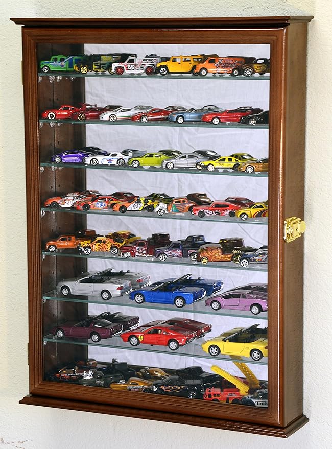 7 Adjustable Shelves Hot Wheels/Matchbox Diecast Cars 1/64 1/43 Model Display Case Cabinet, Walnut