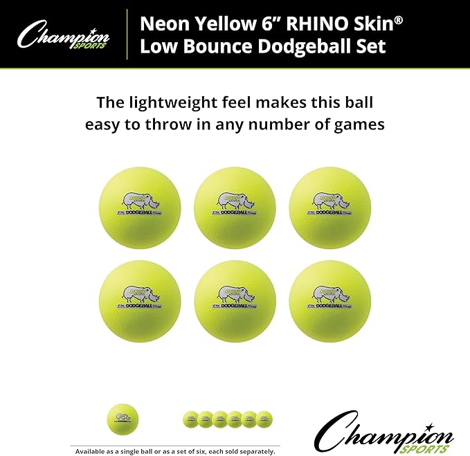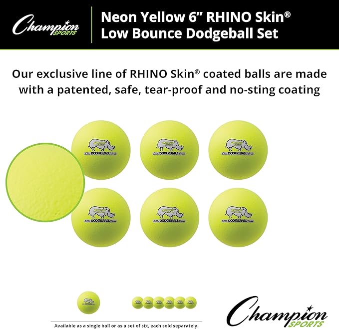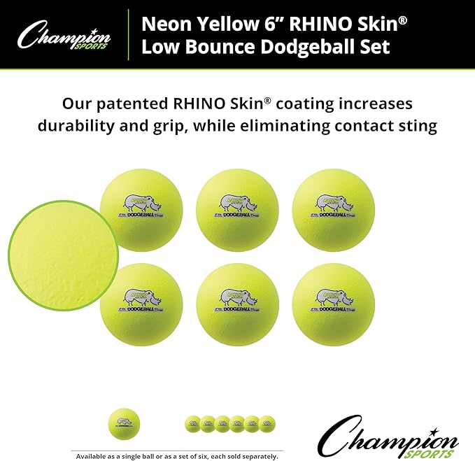 Champion Sports® Rhino Skin® Low Bounce Dodgeball Sets & Singles for Playground, PE, Backyard & League Games – Team Sports Equipment for Youth & Adults