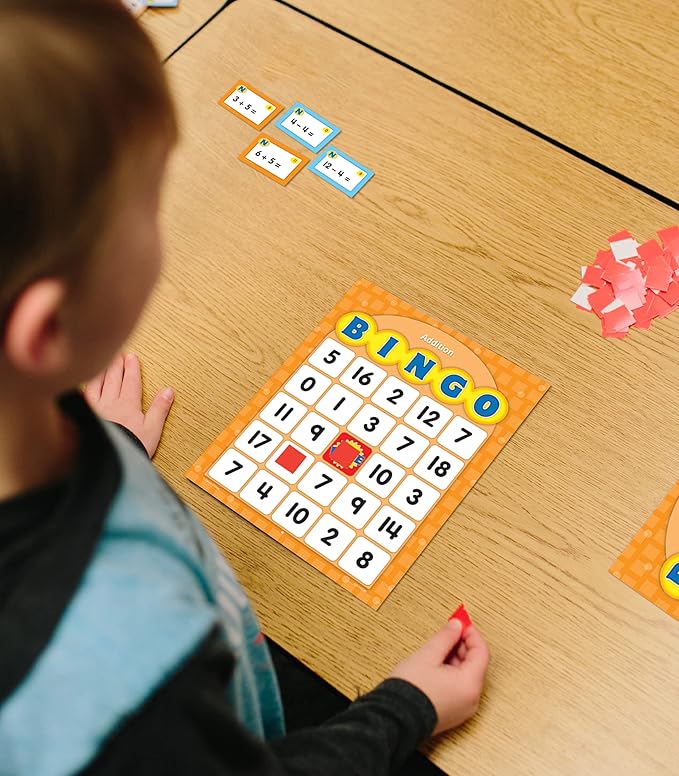 Carson Dellosa Education Addition and Subtraction Bingo Board Games, Adding and Subtracting Math Facts for Kids Ages 5+, Kindergarten Learning Activities, 3-36 Players