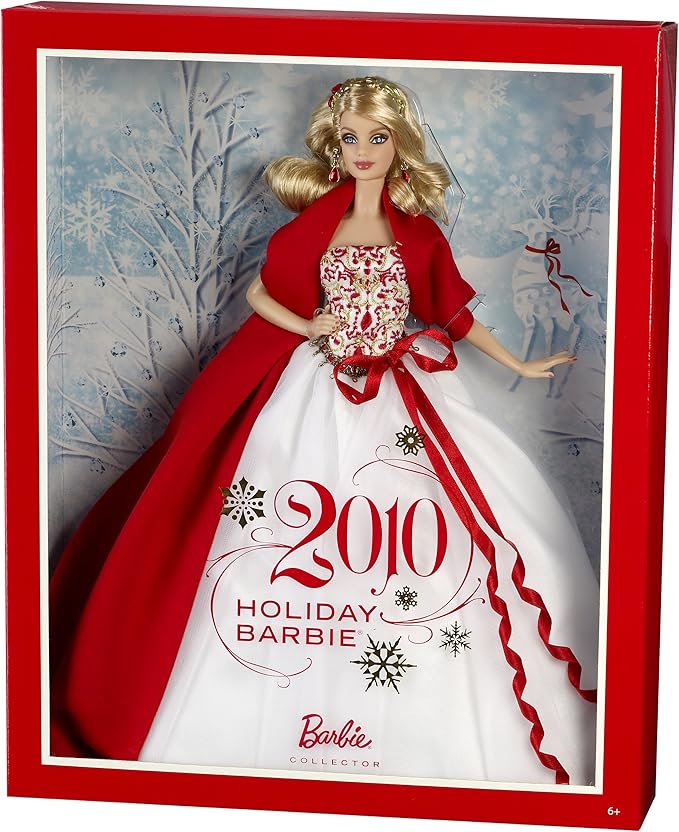 About This This holiday season glows glamorous 2010 Holiday Barbie doll shines in her snowy white gown Beautiful red and... Read more