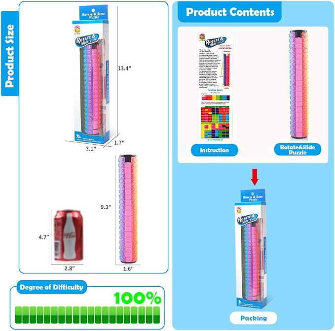 R.Y.TOYS Rotate and Slide Puzzle-Design Patent,Fidget Toys(Restore Order/Create Patterns)8 Colors,20 Layers-Detach Piece for Quick Play,Brain Teaser,Sensory Toys,Birthday Gifts,Easter Basket Stuffers