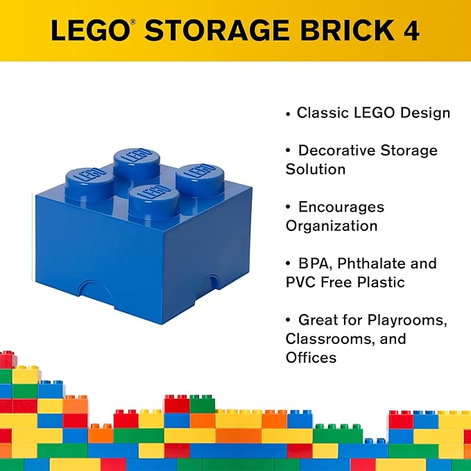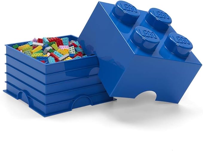 LEGO Storage Brick 4 Knobs Blue - Stackable Plastic Storage Box with Lid for Kids and Adults Ideal Desk Organizer and Toy Box - 5.6L Capacity