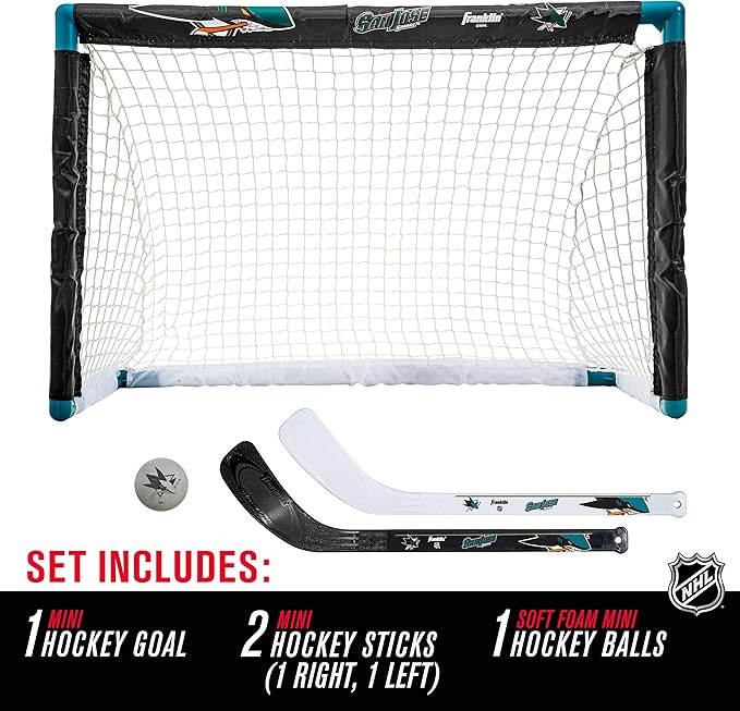 Franklin Sports NHL Mini Hockey Set - Kids Indoor Knee Hockey Goal, Ball, + 2 Stick Combo - Youth Team Indoor Toy Set - Official - Ages 3+