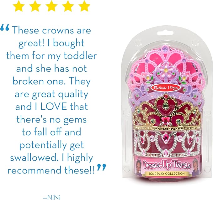 Melissa & Doug Dress-Up Tiaras Play Set for Kids (4-Piece) – Pretend Princess Crowns for Costume Role Play – Preschool Jewelry Toys for Girls Ages 3+