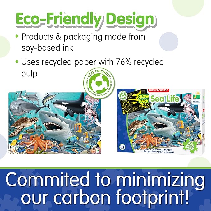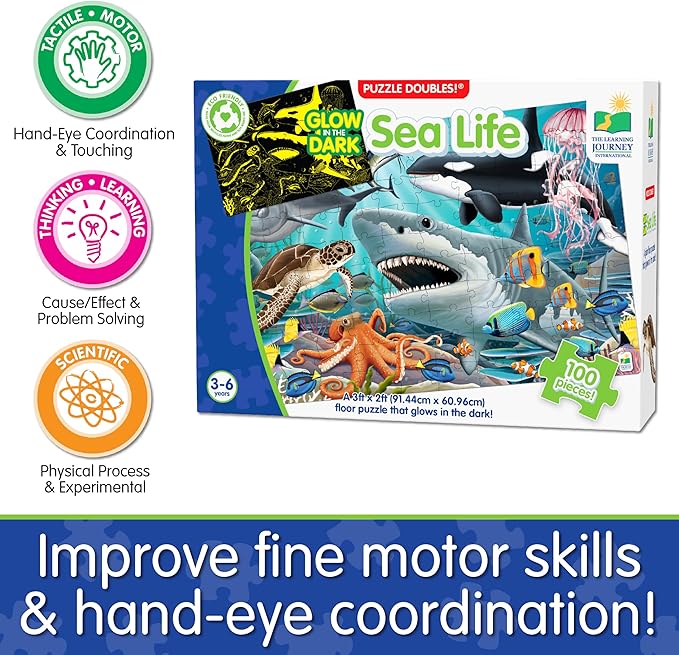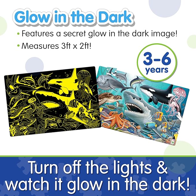 The Learning Journey Puzzle Doubles Glow in The Dark - Sea Life - 100 Piece Glow in The Dark Preschool Puzzle (3 x 2 feet) - Educational Gifts for Boys & Girls Ages 3 and Up, Model Number: 115220