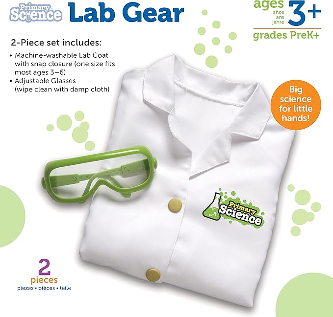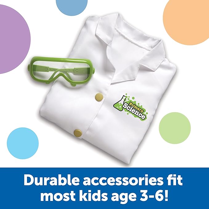 Learning Resources Primary Science Lab Gear - Kids Lab Coat and Goggles, Pretend Play Scientist Gear and Career Costumes for Kids, Mad Scientist Costume, Toddler Dress-Up Set, STEM Play, Ages 3-6