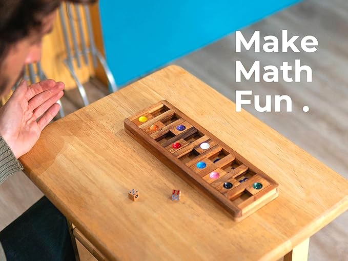 BSIRI Shut The Box Board Games with Math Kids Player Wooden Box of Brain Teaser Puzzles for Family Educational and Get Fun on Game to Teach Kids to Count on Math