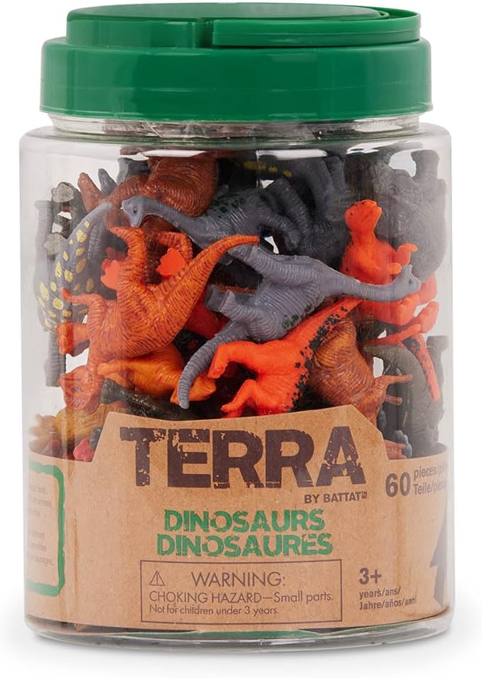 Terra by Battat – 60 Pieces Dinosaur Figures Assorted Mini Plastic Animals for Kids Birthday Party Supplies Decorations Educational Toy Playset 3+ Years