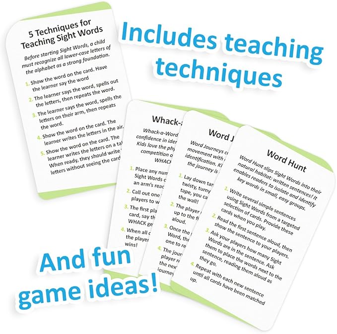 100 Vocabulary Flash Cards for Sight Words - 6 Learning Games per Deck for Preschool & Elementary Early Learning - 1st Grade