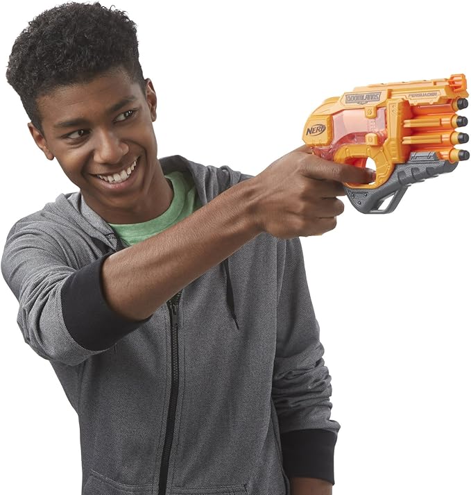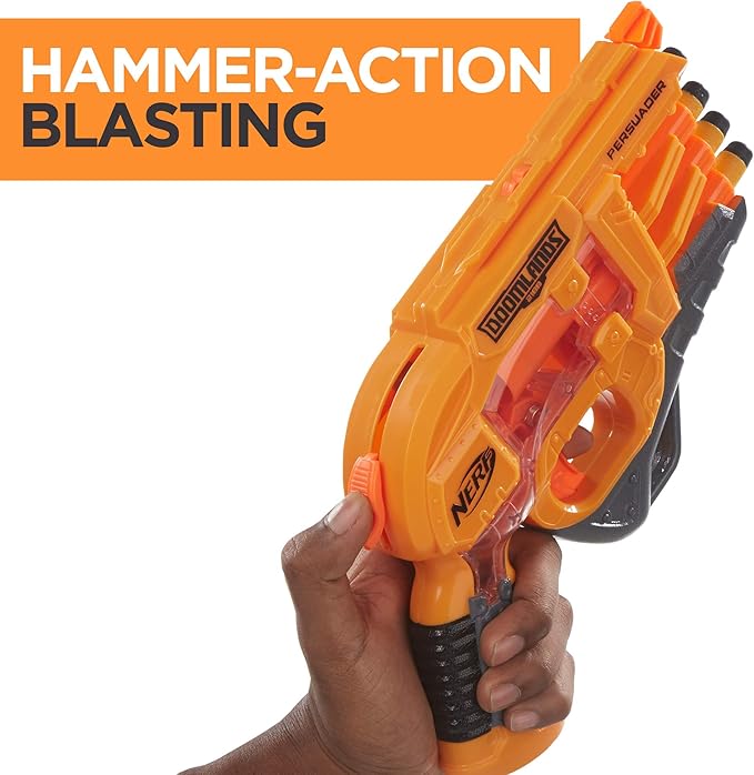 About This HAMMER-ACTION BLASTING: Pull back the hammer and press the trigger to start blasting with the Persuader Nerf Doomlands... Read more