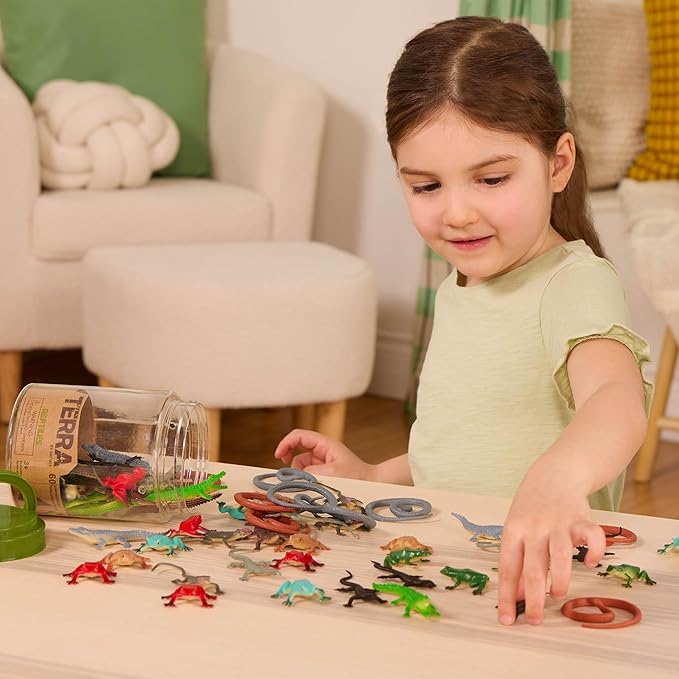 Terra by Battat – 60 Pieces Lizard Animal Tube – Realistic Plastic Reptile & Amphibian Figurines – Frog, Alligator, Snake & More – Educational Toys for Kids & Toddlers, 3+ Years