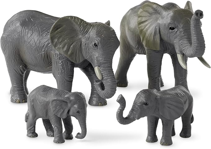 Terra by Battat – 4 Pieces African Elephant Toys Family Set – Realistic Plastic Safari Animals Figures – Animal Toys for Kids 3+ Years – Elephant Gifts & Baby Shower Decorations