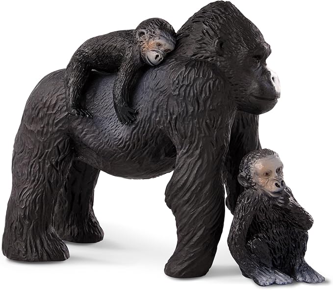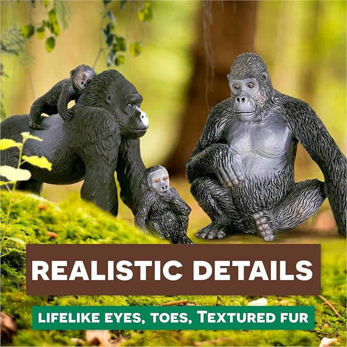 About This Gorilla Family: Set of four gorilla animal toys with two adults and two kids. Includes: Playset includes four... Read more