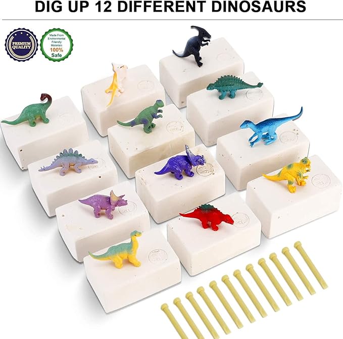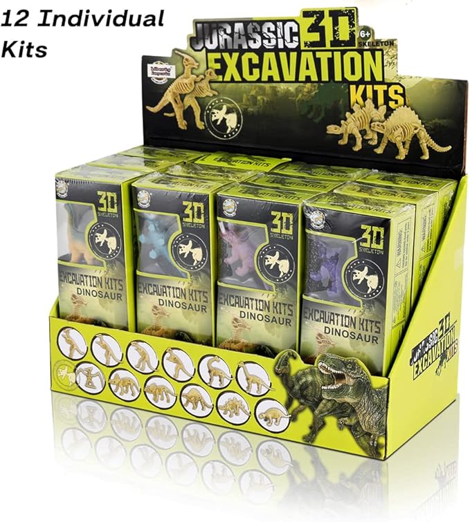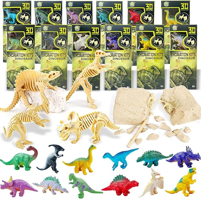 12 Pack: Dinosaur Excavation Kits for Kids, Dino Dig Kits, 3D Dig a Dinosaur Fossil and Figure Sets, Bulk Science Education Toys for Paleontology Archaeology STEM Learning Kids Activity Party Favors