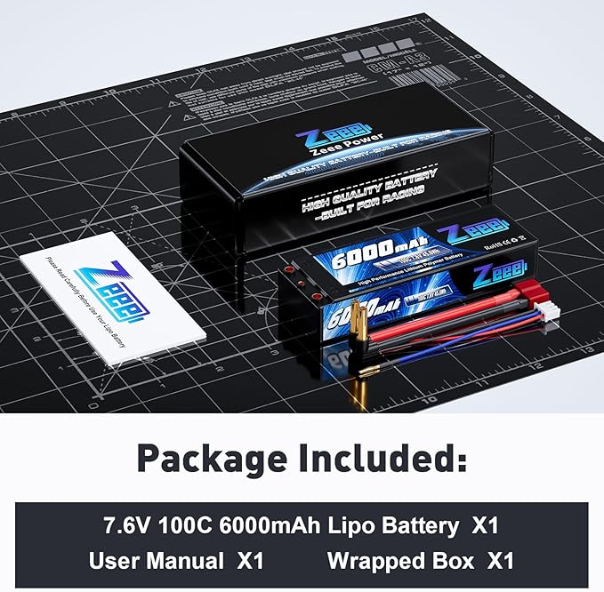 About This 【2S Lipo Specificaation】- Battery voltage: 7.6V; Configuration: 2S1P; Capacity: 6000mAh; Discharge:100C; Cell voltage: 3.2~4.35V; Plug: T Connector; Bullet... Read more
