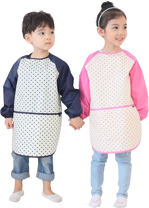 • Waterproof protection for messy play and painting. Keeps clothes clean during crafts, finger painting, or baking.