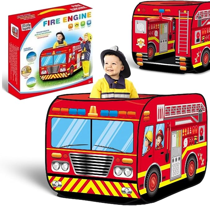 Pop Up Play Tent for Kids - My First Foldable Indoor & Outdoor Playhouse Vehicle Toys for Toddlers, Boys and Girls (Fire Truck)