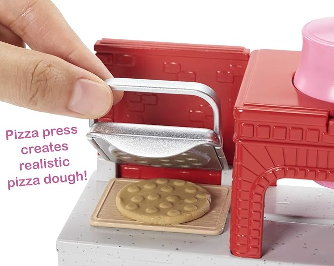 Barbie Careers Playset, Blonde Pizza Chef Doll with Toy Oven & Counter with Sliding Conveyer Belt, Molds, 3 Dough Colors & Accessories
