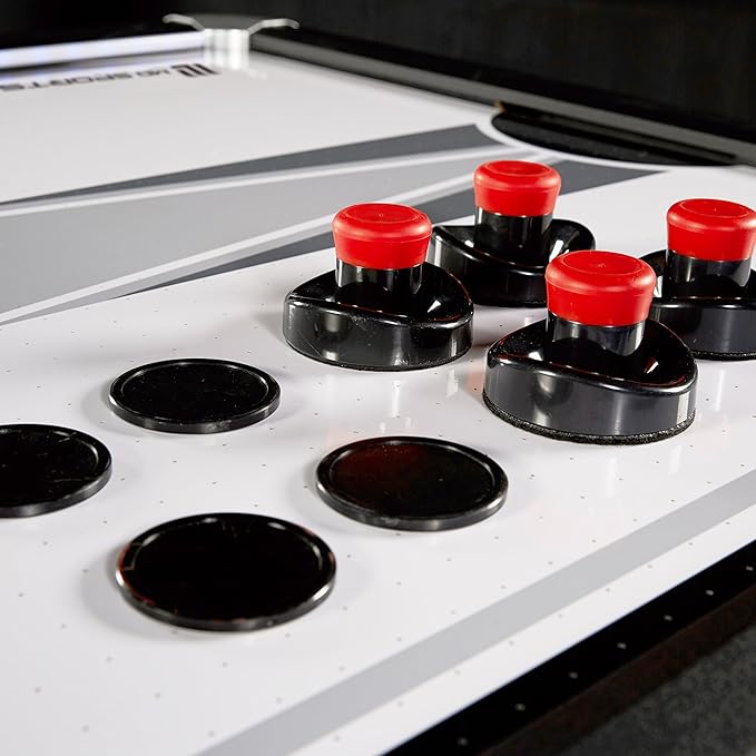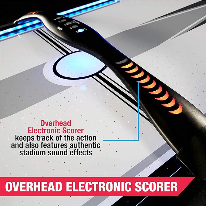 About This COMPETITION SIZE & STRONG AIR FLOW: This 7.5’ hockey table with an Arcade design is near tournament size... Read more