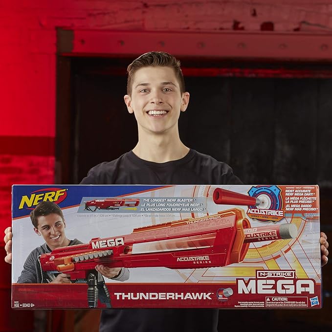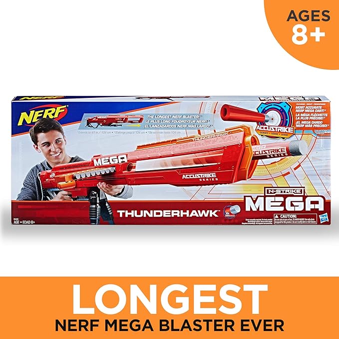 About This The Thunderhawk bolt-action blaster is the longest Nerf blaster, extending to 41 inches (1 meter) to go long... Read more