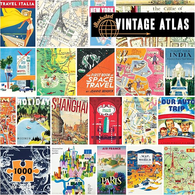 Re-Marks Vintage Atlas Puzzle, 1000-Piece Puzzle for All Ages, Fun Jigsaw Puzzle
