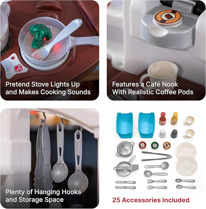Step2 Fun with Friends Kids Kitchen Playset, Indoor/Outdoor Kitchenette, Interactive Play with Lights and Sounds, Durable Plastic, Includes 25 Piece Toy Accessories, Toddlers 2+ Years Old, Pink