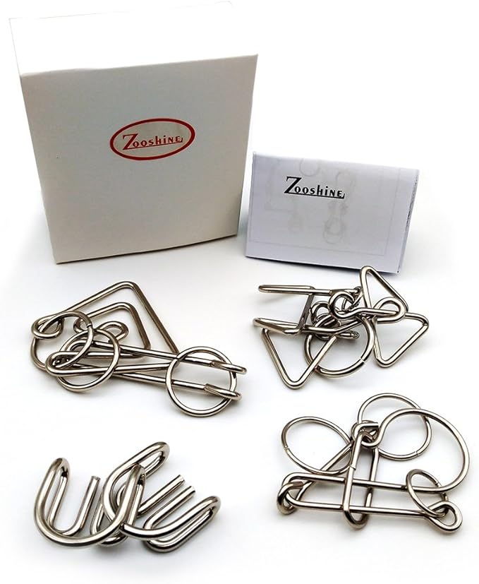Zooshine 4 Sets Advanced Metal Brain Puzzles Teasers Higher Level Challenge for Party Games, Office Toys, Family Games for Kids Adults