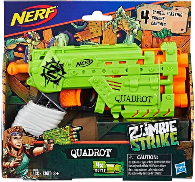 About This Blast 4 darts in a row With the quadrot blaster Comes with 4 zombie Strike darts Stay mobile... Read more