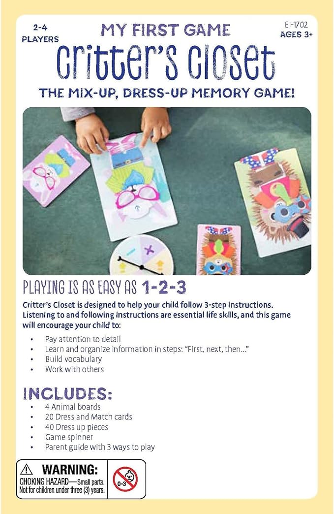 Educational Insights My First Game: Critter’s Closet, First Memory Game, Toddler Toys, Ages 3+