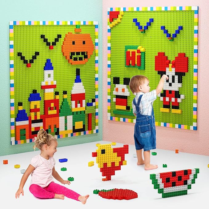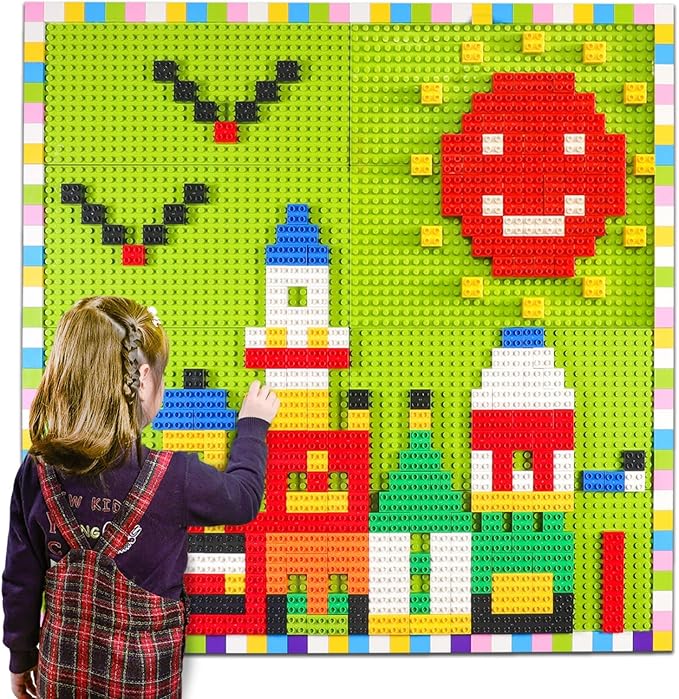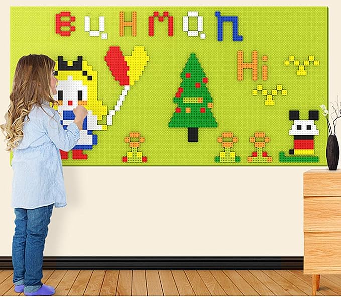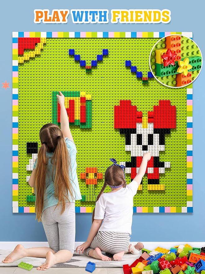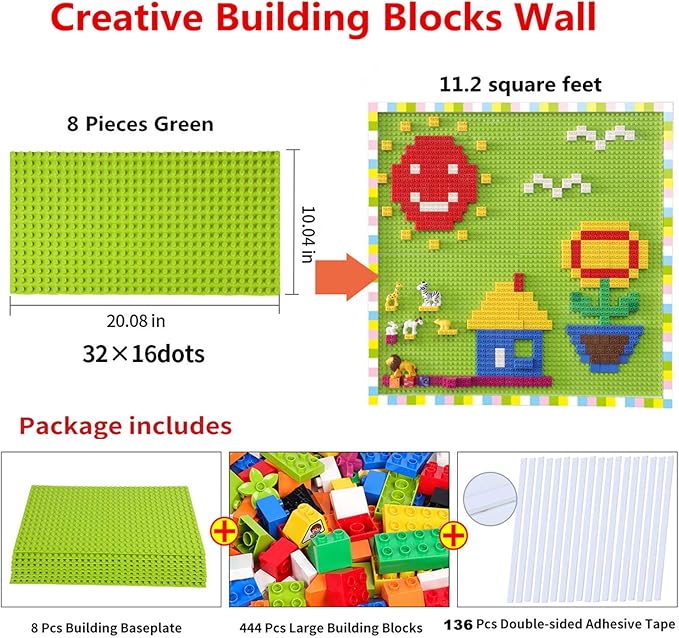 Build On Wall or Table - Customize Building Block Wall, 8 Pack (10" x 20") Self Adhesive Building Base Plate, 440 Pcs Compatible with All Major Brand Brick - Fastest Easiest DIY Fun Wall and Desk