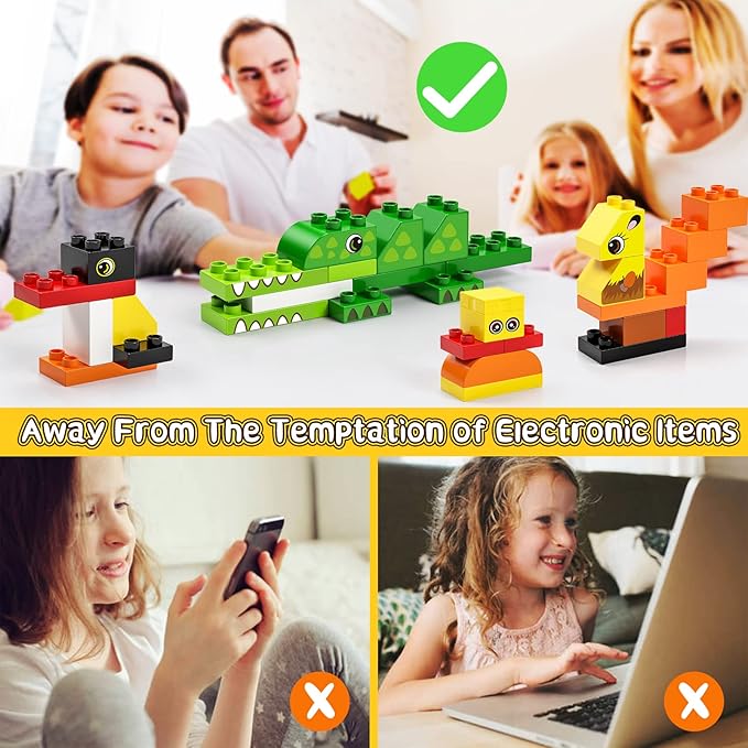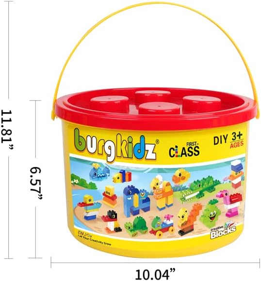 burgkidz Educational Toy Classic Big Size Bricks Building Blocks, Large Compatible Animal Building Bricks with Reusable Storage Bucket Gift for Boy Girl Ages 3+