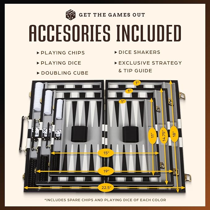 Get The Games Out Backgammon Set, Classic Board Game Case, 2 Players, Includes Strategy & Tip Guide, Perfect for Parties and Family Game Nights - Small, Black