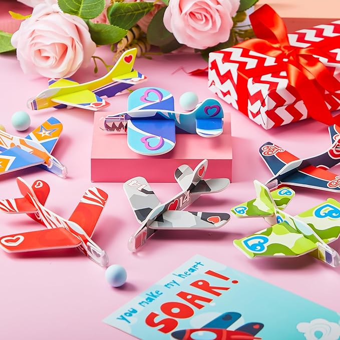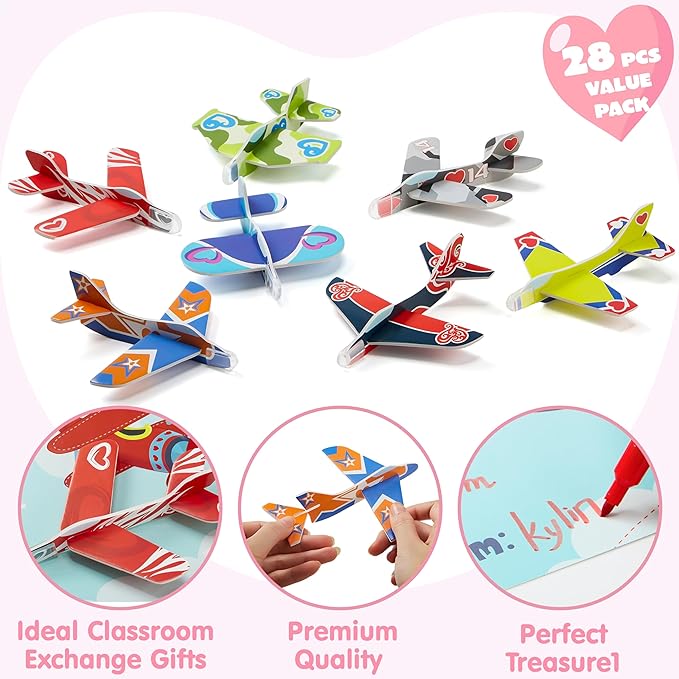 JOYIN 28 Pack Valentines Day Gifts Cards, Valentine's Greeting Cards for Kids with Foam Airplanes Classroom Exchange Party Favor Toy