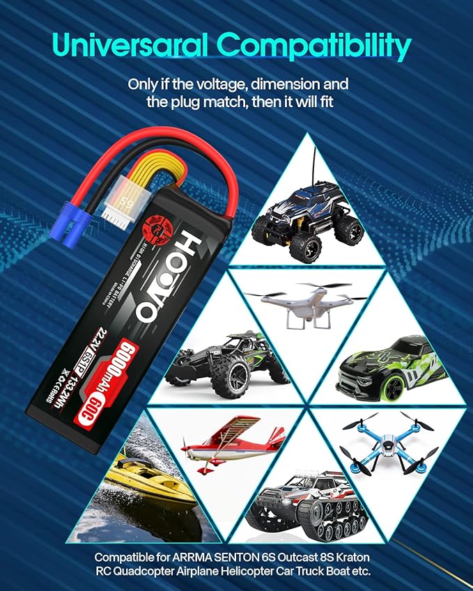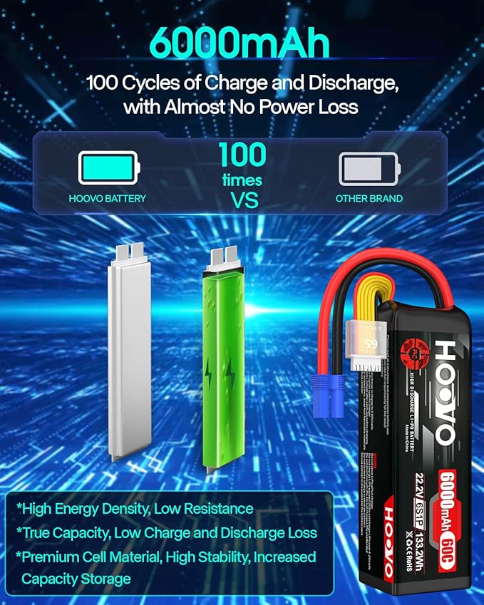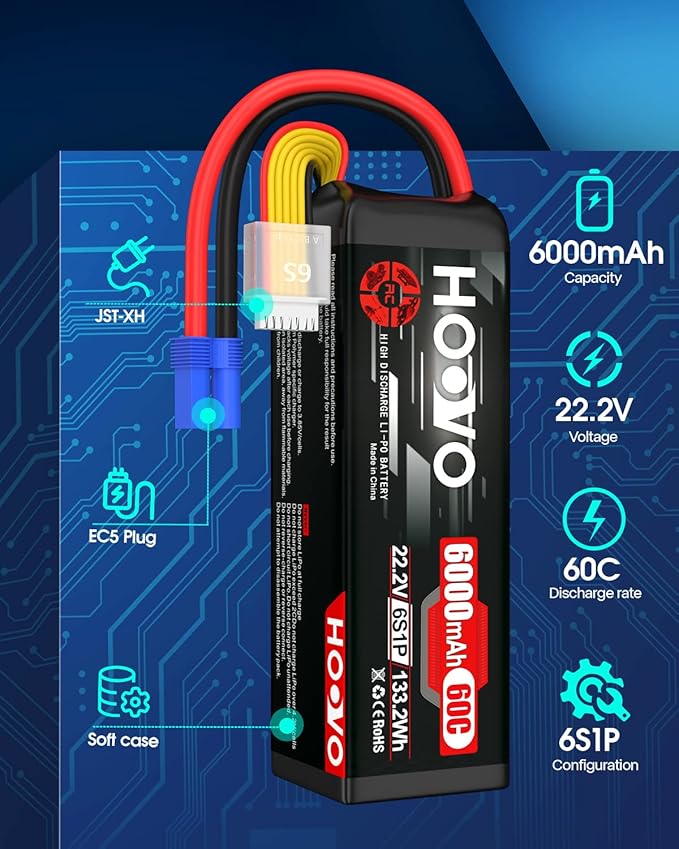 HOOVO 22.2V 6000mAh 60C 6S LiPo Battery with EC5 Plug for RC Quadcopter Truck Boat Airplane Helicopter RC Vehicle
