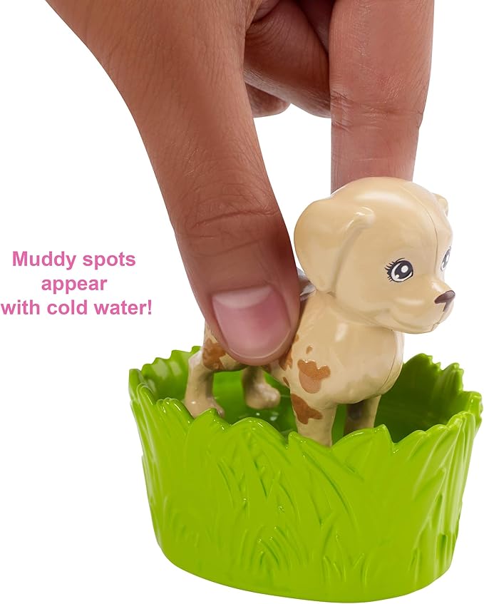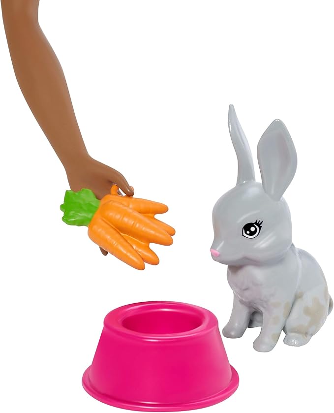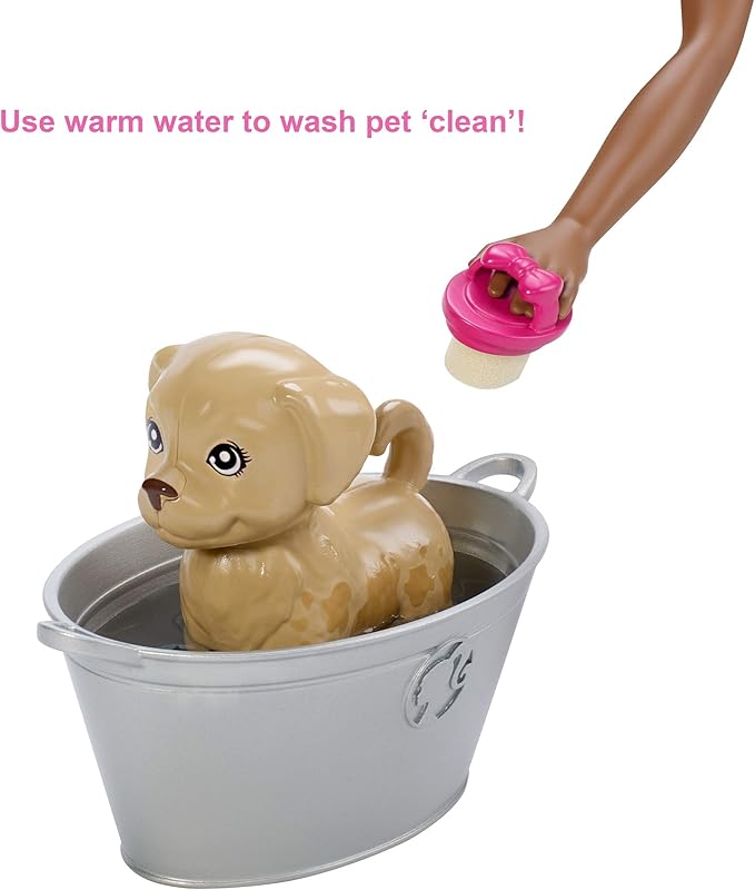 Barbie Play ‘n’ Wash Pets Playset with Brunette Doll, 3 Color-Change Animals (a Puppy, Kitten and Bunny) and 10 Pet and Grooming Accessories, Gift for 3 to 7 Year Olds