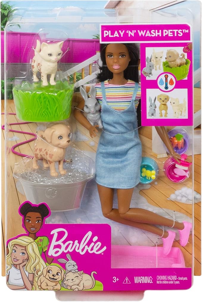 About This Barbie doll is caring for 3 adorable pets with the Play 'n' Wash Pets playset -- a puppy,... Read more