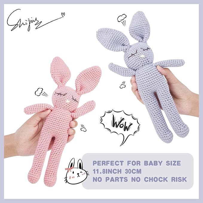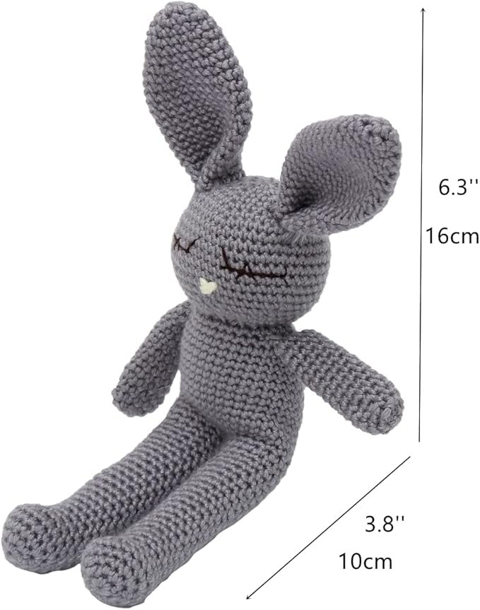 Moni's Choice Stuffed Plush Baby Crochet Bunny Rabbit Easter Gifts Handmade Stuffed Animal Hand-Knit Doll Granddaughter Grandson Lovey Sleep Toy Newborn(Grey)
