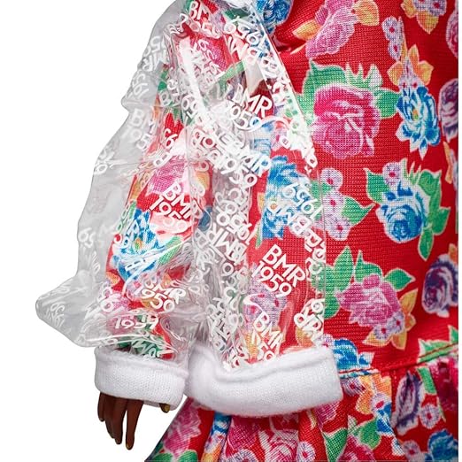 Barbie BMR1959 Fully Poseable Curvy Fashion Doll, Brunette, in Clear Vinyl Bomber Jacket and Floral Hoodie Dress, with Accessories and Doll Stand