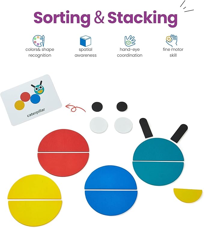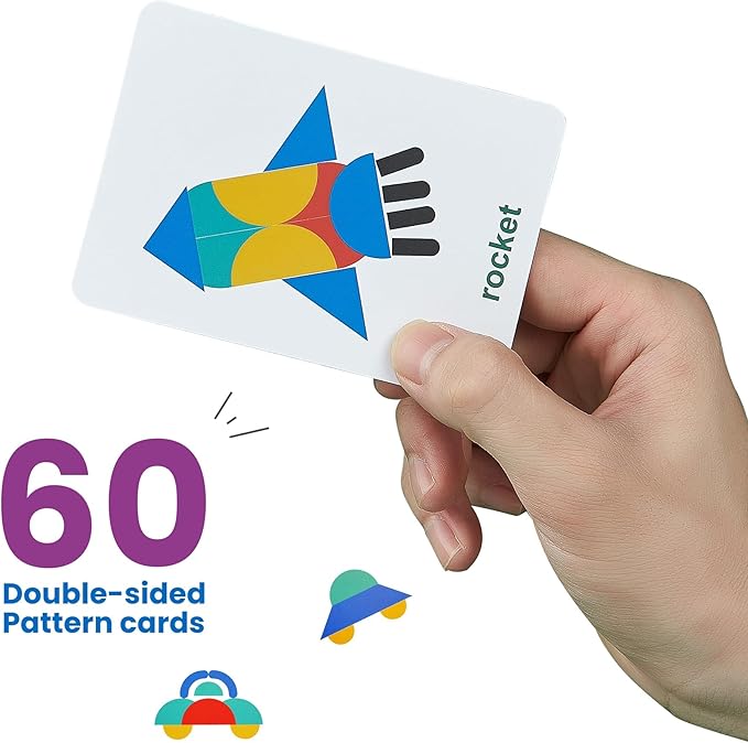 About This Contains 36 wooden shape pieces, 60 pattern cards and 2 iron tins for storing the pieces kids can... Read more
