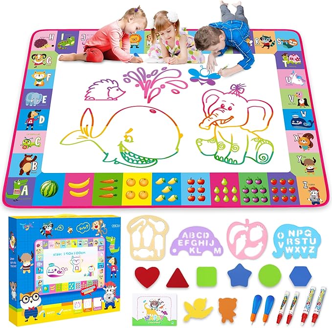 Water Doodle Mat - Kids Painting Writing Doodle Toy Board - Color Doodle Drawing Mat Bring Magic Pens Educational Toys for Age 3 4 5 6 7 8 9 10 11 12 Year Old Girls Boys Age Toddler Gift (Pink)