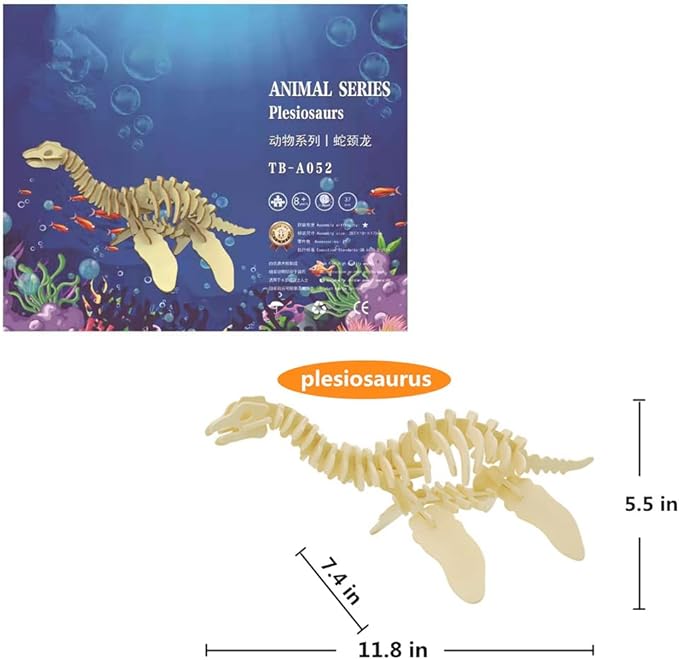 3D Wooden Crafts Puzzle - 3 Piece Set Wood Dinosaur Skeleton Model Puzzle,Wooden Assembly 3D Puzzle Toys,STEM DIY Brain Teaser Puzzle