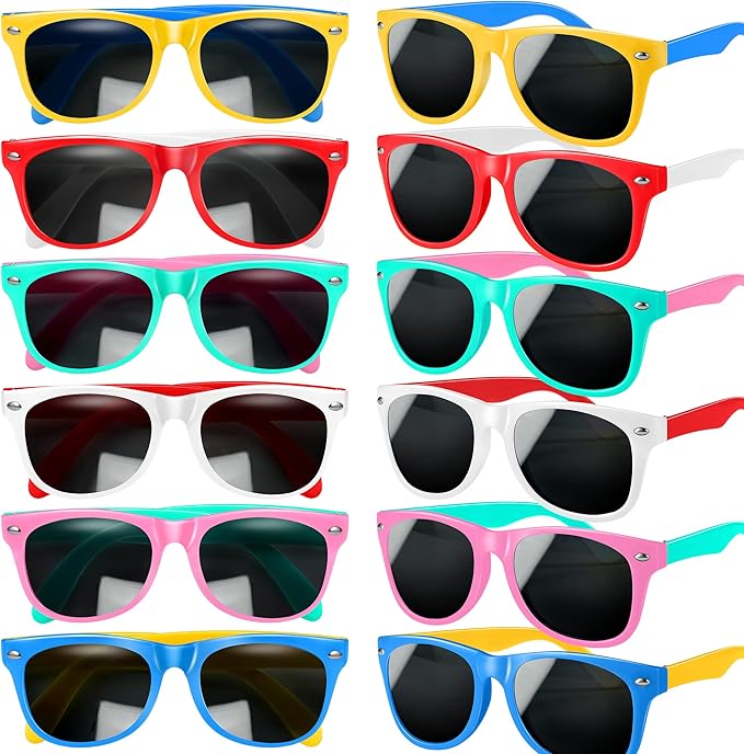 GINMIC Kids Sunglasses Party Favors, 12Pack Valentines Neon for Kids, Boys and Girls, Great Gift Birthday Supplies, Beach, Pool Favors, Fun Gift, Toys, Goody Bag Favors - 80’s Accessories