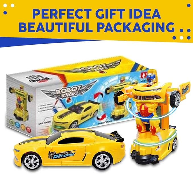 Toysery Transforming Robot Car - One Button Transformation Toy Car with Realistic Engine Sounds, LED Lights and 360 Degree Rotation Speed Drifting Function