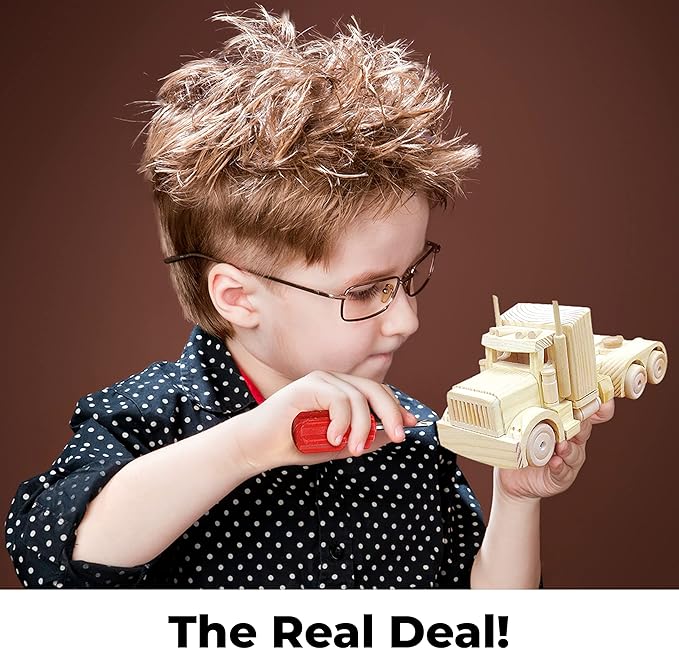 Kraftic Woodworking Building Kit for Kids and Adults, 3 Educational DIY Carpentry Construction Wood Model Kit Toy Projects for Boys and Girls - Build a Wooden Military Jet Race Car and Tractor Trailer