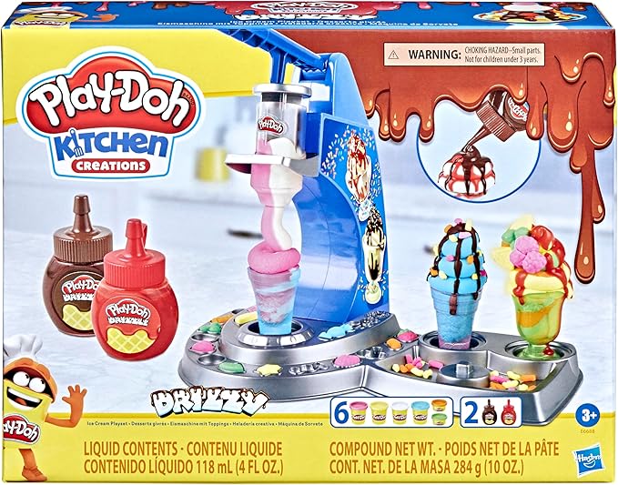 Play-Doh Kitchen Creations Drizzy Ice Cream Playset Featuring Drizzle Compound & 6 Non-Toxic Colors