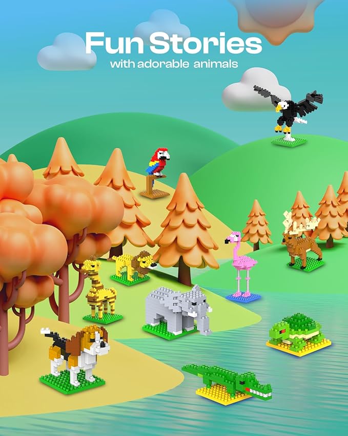 Kimiangel Party Favors for Kids, 12 Pack Mini Animals Building Blocks Sets for Goodie Bags, Prize Box Toys for Kids, Fillers, Prizes, Christmas Birthday Gifts STEM Educational Brick Kits(1222 Pcs)