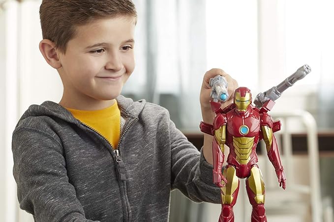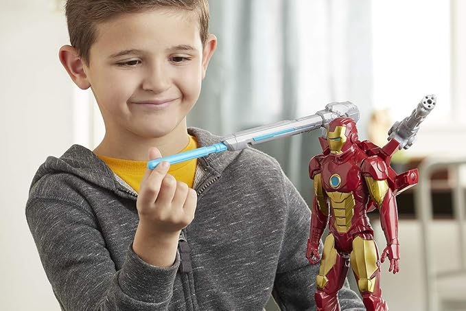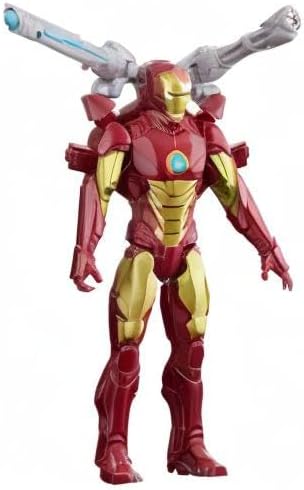 Avengers Marvel Titan Hero Series Blast Gear Iron Man Action Figure, 12-Inch Toy, with Launcher, 2 Accessories and Projectile, Ages 4 and Up, Red