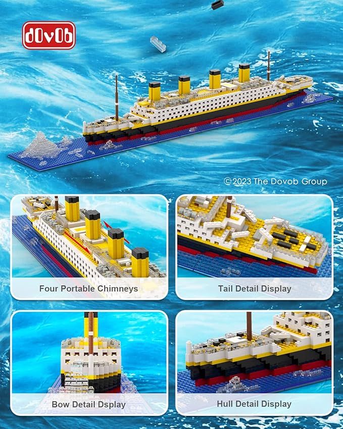 dOvOb Micro Mini Blocks Titanic Model Building Set with 2 Figure, 1872 Piece Mini Bricks Toy, Gift for Adults and Kids